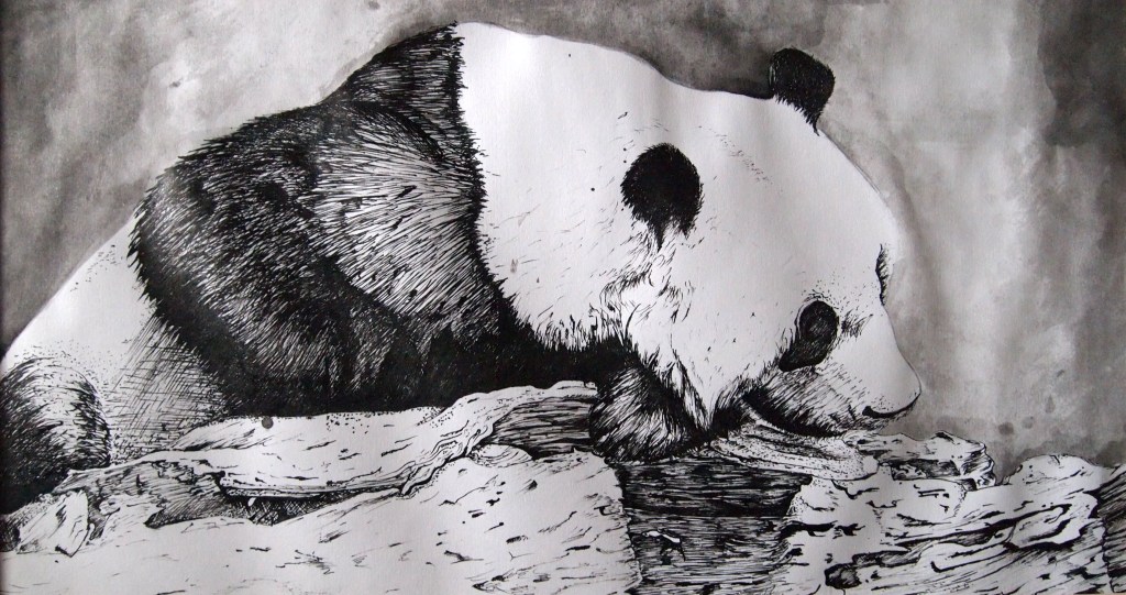 This pen & ink drawing of a panda was based off a photo I took at a zoo.